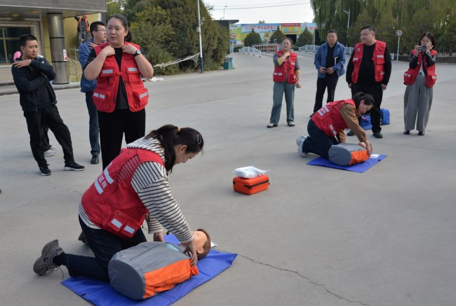 理论授课结束后,医护人员进行了单人徒手心肺复苏的现场演示。他们熟练的操作、严谨的态度,让在场的每一个人都深受震撼。演示过程中,医护人员还特意强调了每个步骤的关键点和难点,为了确保每位参与者都能亲身体验并掌握心肺复苏技能,在医护人员的耐心指导下,大家轮流进行心肺复苏的模拟练习。从判断意识、启动紧急反应系统到胸外按压、打开气道、人工呼吸,每一步都力求准确到位。